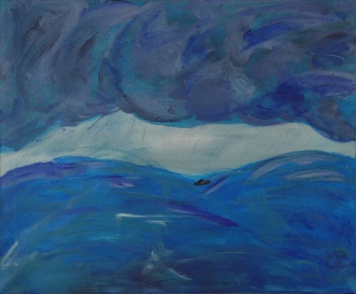 Le tableau « Avant l’orage » capte un moment précis, suspendu dans le temps, juste avant que la nature ne se déchaîne. L’artiste parvient à restituer avec une grande intensité l’atmosphère lourde et silencieuse qui précède l’arrivée d’une tempête. À travers des nuances de gris, de bleu foncé et des teintes orageuses, la toile plonge le spectateur dans une scène chargée de tension et d’attente.