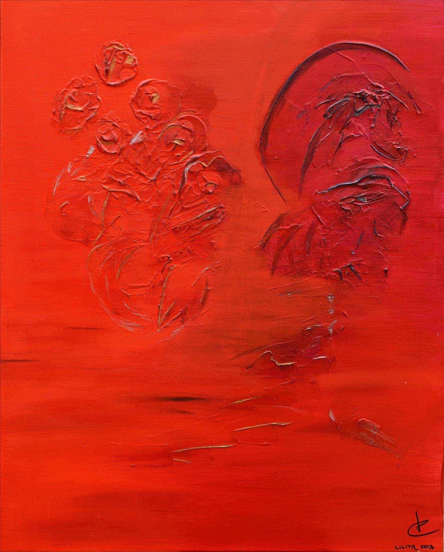 Visuellement, la toile pourrait être dominée par des fleurs d’une beauté exquise, aux couleurs vives et aux détails minutieux. Les teintes peuvent varier, allant des rouges profonds aux pourpres mystérieux, des noirs élégants aux blancs éclatants. Cette palette riche et intense attire immédiatement l’œil, mettant en valeur la complexité et la sophistication des fleurs. Cependant, ce qui rend cette beauté troublante, c’est le traitement des fleurs elles-mêmes : leurs contours peuvent être légèrement déformés, leurs pétales peut-être évoquent des formes plus inquiétantes ou des motifs obscurs.